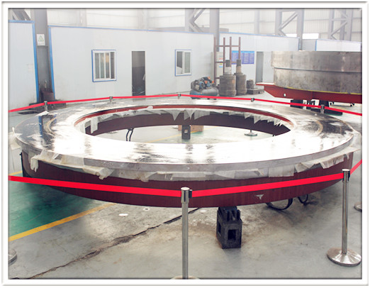 详细摘要: 三峡机组推力轴承是水轮发电机组重要的承载设备,轴向承载5520T,它是世界上承载推力最大,单机容量最高的机组。其重要的组成部分分别为油槽、推力瓦、高压顶起装置及推力头/镜板;推力头/镜板是由推力头和厚80mm的镜板通过把合形成的构件;镜板的表面Ra小于0.4um,平面度不大于0.02mm/M,,镜面与A基准面的平行度小于0.02mm,双跳不大于0.02mm;整体尺寸5200x1100mm,内外柱面同柱小于0.03mm;重68T。