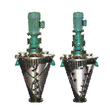 搅拌器由两根与锥体吻合的螺带及实心螺旋组成,物料由下向上沿混合机锥体内壁盘旋提升,内层反向螺杆将物料沿轴盘旋下推,完成混合动作。