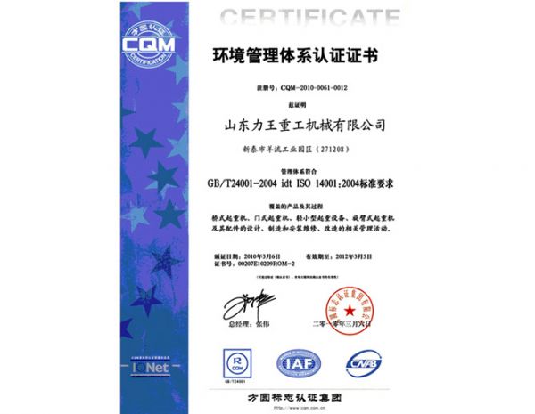 环境管理体系认证证书