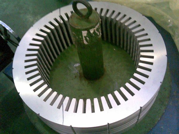 15、采用专用模具后,可在冲定子槽的同时切下定子圈,大大简化了冲片加工工艺。